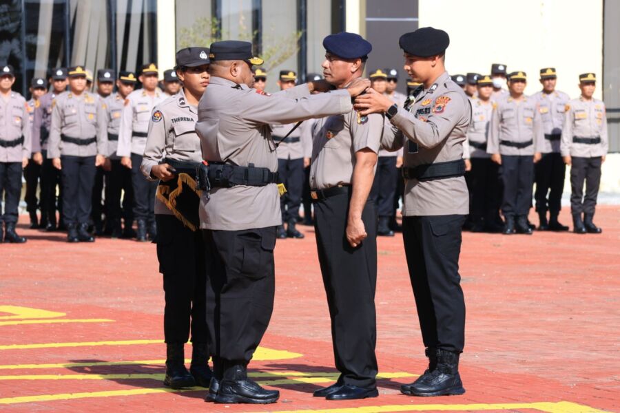 Jayapura – Kapolda Papua, Irjen Pol Mathius D. Fakhiri, S.I.K. memimpin pelaksanaan Upacara Pelantikan Kenaikan Pangkat Luar Biasa anggota Polri Polda Papua Aipda Laode Imran, Senin (11/9/2023) pagi.