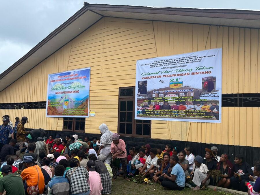 Oksibil- The community is very enthusiastic about this year’s celebration in Oksibil City, Bintang Mountains Regency. Residents flocked to come to places of worship in their respective areas., April 12 2024-
