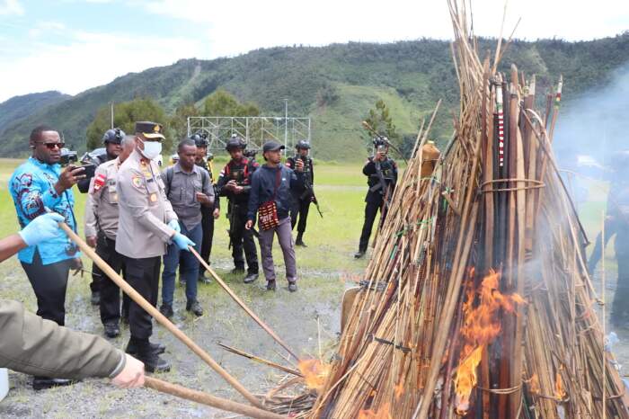 Meanwhile, the Commander of Military Resort 173/PVB stated that the destruction of weapons was a concrete sign that the conflict had ended. While customary traditions of the Dani tribe are respected, the situation is now considered officially resolved. “Today we burn these weapons as a true sign of peace. Our hope is that this peace endures—not just for today, but for the future,” he said.
