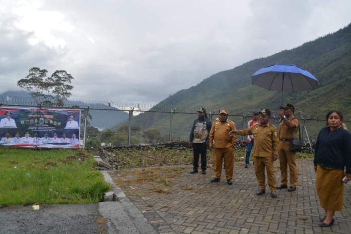 Mulia – The Regent of Puncak Jaya, Dr. Yuni Wonda, S.Sos., S.IP., MM, together with the Deputy Regent, the Chair of the Regional House of Representatives (DPRK), and the Regional Secretary of Puncak Jaya, conducted direct inspections of several key locations that will host the upcoming visit of the Governor and Deputy Governor of Central Papua Province, along with eight Regents from across the Central Papua region.