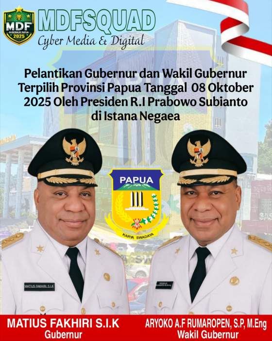 Rabu, 08 Oktober 2025 akan menjadi catatan penting dalam sejarah Papua. Pada hari itu, rakyat Papua akan menyaksikan secara resmi pelantikan Kaka Matius Derek Fakhiri dan Kaka Aryoko Rumaropen sebagai Gubernur dan Wakil Gubernur Provinsi Papua. Momentum ini bukan sekedar seremonial politik, tetapi merupakan tonggak baru perjalanan demokrasi dan pembangunan di tanah Papua.