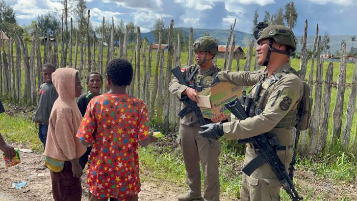Paniai, Central Papua — The personnel of Task Force Operation Peace Cartenz 2025 continue to demonstrate their commitment to strengthening community relations through humanitarian communication activities held in Bibida Village, Paniai Regency, on Sunday (October 5, 2025).