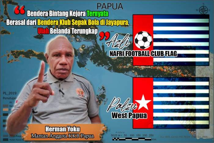 Menurut kesaksian Herman Yoku, tokoh masyarakat yang pernah terlibat dalam Organisasi Papua Merdeka (OPM) atau yang dikenal dengan Organisasi Kelompok Kriminal Bersenjata (KKB), sebelum kembali setia kepada Negara Kesatuan Republik Indonesia, Bendera Bintang Kejora sejatinya berasal dari bendera sebuah klub sepak bola di wilayah Nafri, Kota Jayapura.