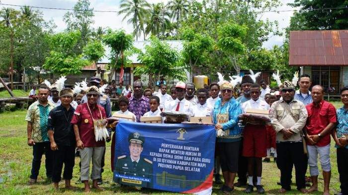 MAPPI – The Minister of Law of the Republic of Indonesia, Supratman Andi Agtas, extended his appreciation to the students and teachers of SD Inpres Isyaman in Mappi Regency, South Papua, by donating school shoes and bags on Thursday (October 16, 2025).