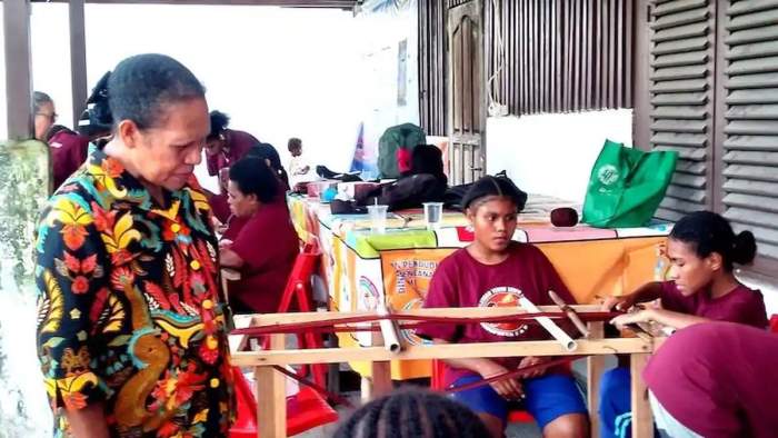 The training, initiated by the Cultural Affairs Division of the Sarmi Education and Culture Office, brings in local weaving experts who teach a variety of materials, including the introduction of weaving tools, basic thread-weaving techniques, and the meaning behind Sarmi’s signature motifs.