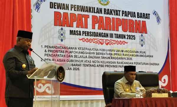 Pembahasan terkait rancangan peraturan daerah tentang APBD Papua Barat ini dimulai setelah Gubernur Drs. Dominggus Mandacan, M.Si menyampaikan Nota Keuangan dalam rapat paripurna DPRP pada masa sidang ketiga tahun 2025 yang berlangsung di Ballroom Aston Niu, Manokwari, Jumat (12/12/2025).